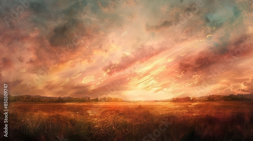 Warm hues of sunset create tranquil autumn sky background