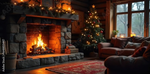 Warm, inviting glow of a fireplace radiating heat, creating a cozy and comfortable atmosphere in a rustic living room Perfect for winter, holiday, or home comfort themes , logs, background, shadow