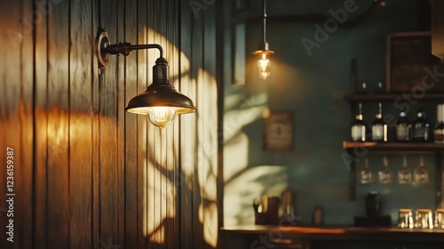 Warm Light Illuminates Rustic Wooden Wall in a Bar Setting