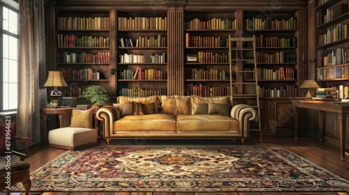 Warmlylit vintage living room with a comfortable couch and framed pictures