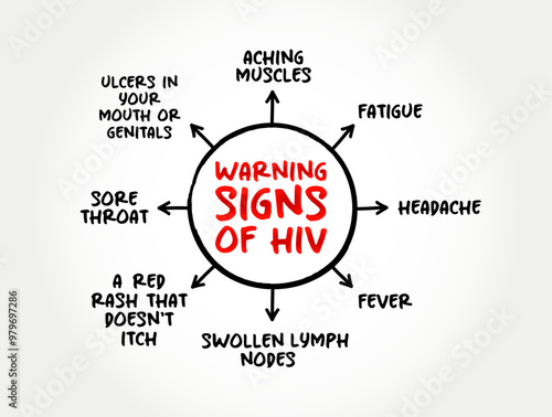 Warning signs of HIV Infection - virus that attacks the body's immune system, mind map text concept background