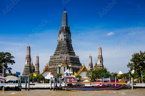 Wat Arun, Temple of Dawn, Boats on the Chao Phraya River, Bangkok Yai District, Thonburi, Bangkok, Thailand, Asia