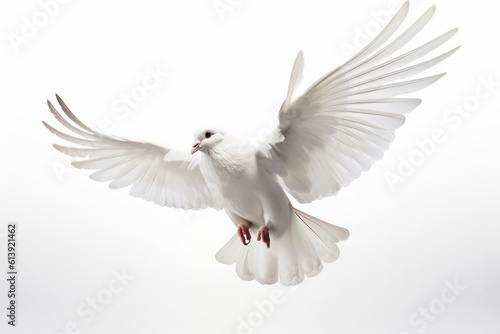 Watch in awe as this majestic white bird takes flight, its wings spread wide and talons ready for the hunt. AI Generative.