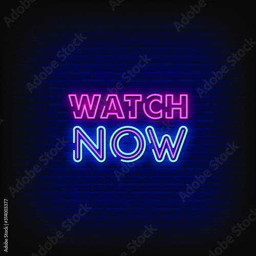 Watch Now Neon Signs Style Text Vector