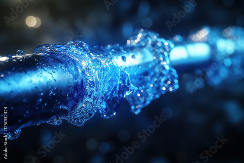 Water bottle with glistening droplets on a wooden table, illuminated by soft sunlight against a blurred natural background.