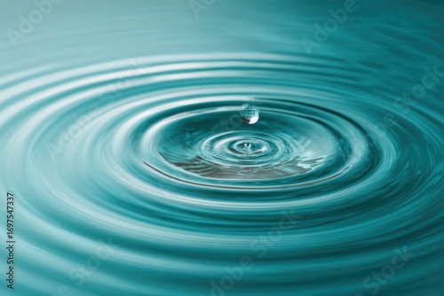 Water Droplet Creating Ripples on Calm Surface in Soft Turquoise Color Palette with Smooth Flowing Movement