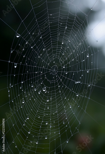 water droplets on a spider web in nature, dreamy atmosphere, with white tones