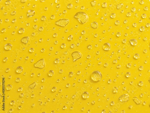 Water droplets on bright yellow surface, reflecting light and creating stunning patterns, patterns, detail