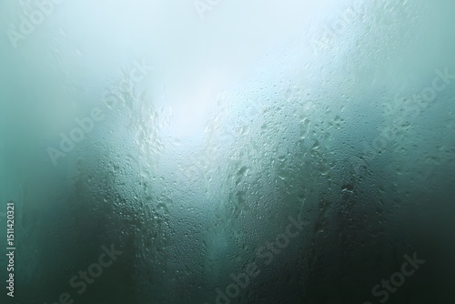 Water droplets on the glass, with a soft, ethereal light. A refreshing atmosphere created by the misty texture