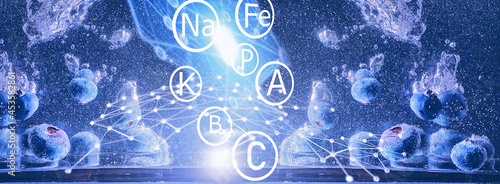 Water drops on ripe sweet blueberry. Fresh blueberries background with copy space for your text. Vegan and vegetarian concept.