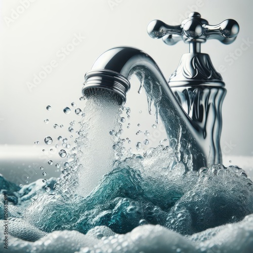 Water faucet closeup Running water in bathroom Isolated on white background