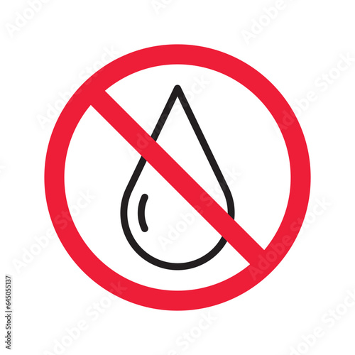 Water prohibited vector icon. No water drop icon. Forbidden water icon. Warning, caution, attention, restriction, danger flat sign design symbol pictogram