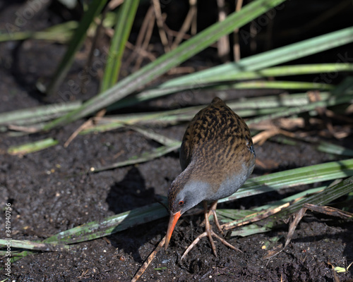 Water rail, Rallus aquaticus on the edge of a reed bed