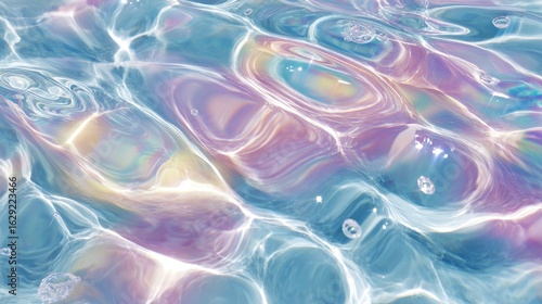 Water surface with ripples and light reflecting in pastel colors.