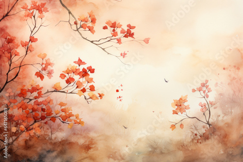 Watercolor Autumn leaves abstract background, Colorful foliage in park