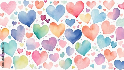 watercolor background, Charming watercolor hearts background for St. Valentine's Day with colorful hearts in a playful design