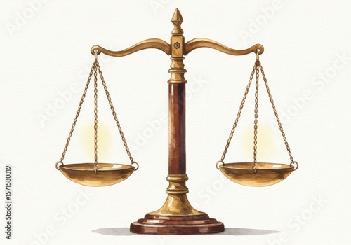 Watercolor Balanced Scales of Justice - Symbolizing fairness, equity, law, judgment, and balance. A classical representation of justice