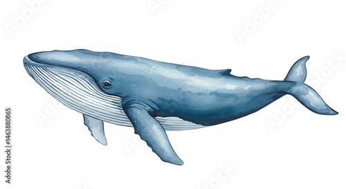 watercolor blue whale illustration isolated on white background, subject at bottom with copy space at top. ,isolated on bright background, no text ,copy space