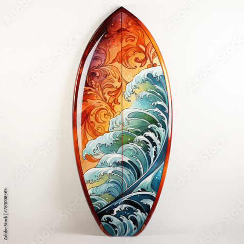 Watercolor Colorful Surfboard Illustration, Generative Ai