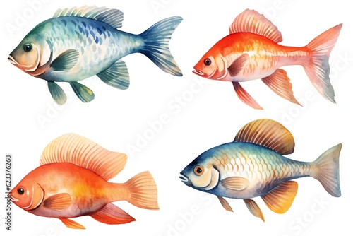 Watercolor fish clip art on white background Generative AI