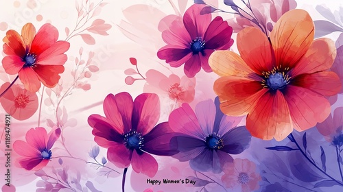 Watercolor Flowers in Vibrant Colors Celebrating Women's Day with copy space