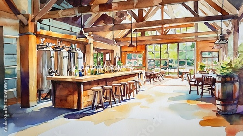 Watercolor Illustration of a Bar Interior.