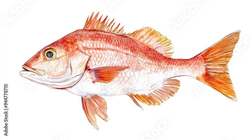 Watercolor illustration of a Schoolmaster Snapper Fish in a side view created in a hand drawn style