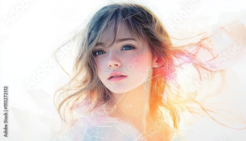 Watercolor Illustration of a Strong Beautiful Woman with Flowing Hair in Pastel Colors