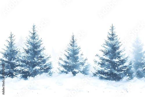 Watercolor Illustration of Snowy Forest with Christmas Trees