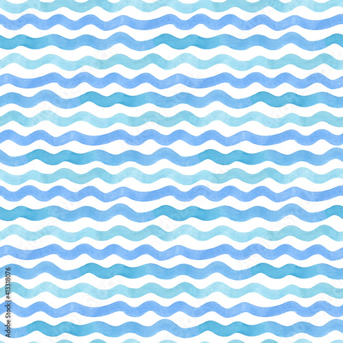 Watercolor lines seamless pattern Waves. Hand drawn. Blue color stripes on isolated on white. Good for fabric, textile, wrapping paper, wallpaper, prints