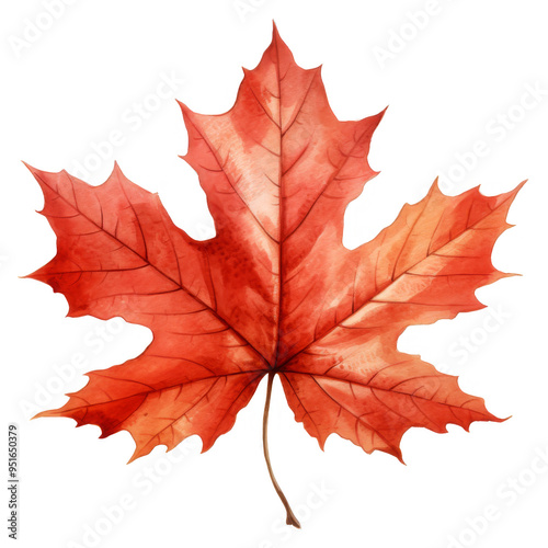 Watercolor Maple Leaf Isolated on a Transparent Background