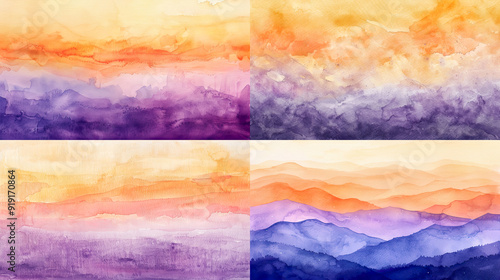 Watercolor ombre, soft oranges and purples of a dusk sky, creating a dreamy and peaceful gradient