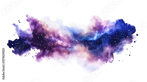 watercolor, one single colorful starry space nebula cloud isolated on solid white background clipping path