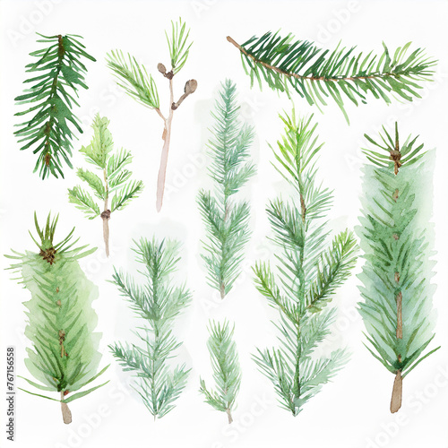 Watercolor painting of fir branches. Abstract natural elements. Hand drawn art. Botanical design.