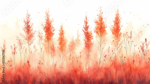 Watercolor Painting of Tall Grass with Orange and Red Hues