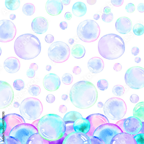 Watercolor rainbow bubbles background . Soap circles shapes , texture. Polka dot background, paper, backdrop, party, birthday, card