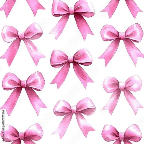 Watercolor Seamless Pattern of Pink Ribbon Bows for Invitations Greeting Cards and Design