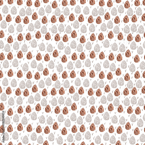 Watercolor seamless pattern with wild forest animals, trees and autumn plants