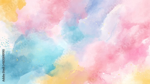 Watercolor splashes with soft, pastel colors create an ethereal, dreamy abstract background