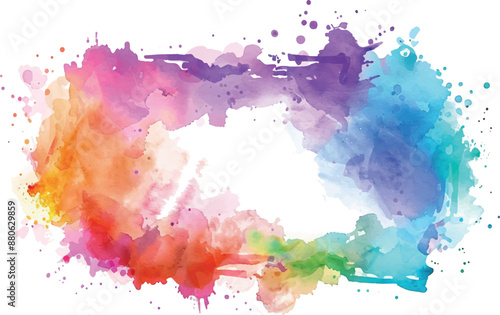 watercolor square rectangle background with brushstrokes and splashes, rainbow colors