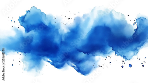 Watercolor stain texture blue isolated on white and transparent background. Generative AI.