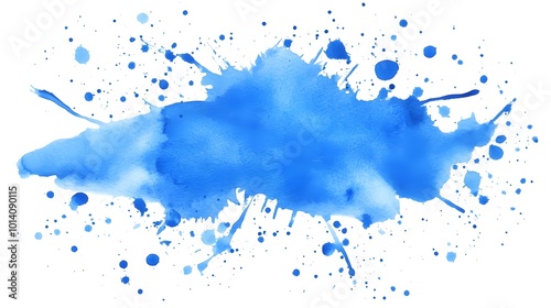 Watercolor stain with blue paint splatter, featuring a vibrant, abstract design with dynamic splatter effects