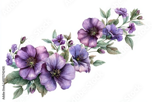 Watercolor-style floral corner frame featuring soft violet and lilac flowers with gentle green leaves, creating a delicate and elegant look for refined designs..