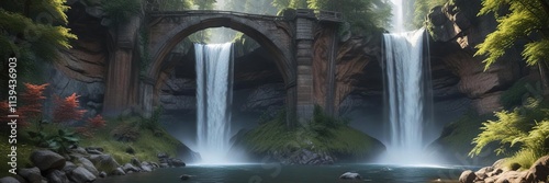 Waterfall and arches in a forested area near dam , dams, forested hills