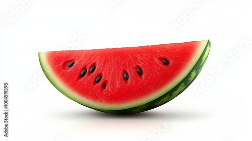 Watermelon Slice: A perfectly ripe and juicy slice of watermelon, bursting with vibrant red flesh and black seeds. Perfect for summery themes, healthy eating, and refreshing drinks.