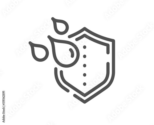 Waterproof line icon. Water resistant sign. Drop protection symbol. Quality design element. Linear style waterproof icon. Editable stroke. Vector