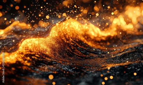 Wave of Molten Metal Abstract Digital Background, Generative AI