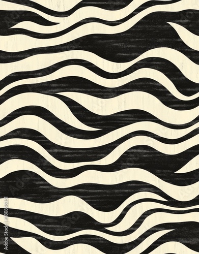Wavy Abstract Pattern With Alternating Black And Light Horizontal Stripes On Wooden Texture