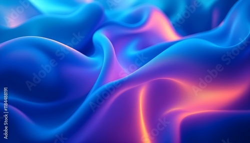 Wavy blue and purple abstract background extreme close-up. 3d renders metallic liquid background. Abstract neon texture. Rainbow 3d holographic foil. Abstract blue and purple illuminated smooth wavy
