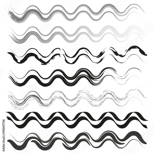 Wavy hand drawn lines. Set of abstract curves. Black and white waves. Vector illustration.